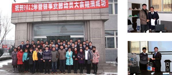 2012年1月8日,桑拓營銷事業(yè)部動員大會在桑拓公司辦公樓順利召開,在常總的主持下,各區(qū)域做了2011年生意回顧,展望并詳細的做了2012年各地區(qū)銷售目標分解,同時宣誓堅決完成2012年銷售目標,會場氣氛活潑而熱烈。對…...